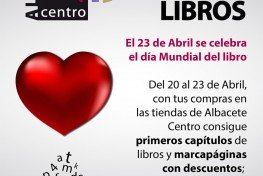 Albacete Centro ama los libros y fomenta la lectura, por eso queremos celebrar con vosotros el Día del Libro. Del 20 al 23 de abril compra en nuestros establecimientos y llévate primeros capítulos de libros y marca-páginas con descuentos para tus compras en el Altozano el día 23.